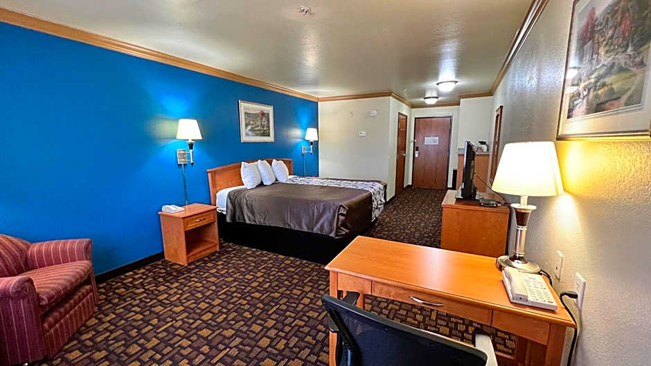 Room options include configurations such as a King Room and a Queen Room with Two Queen Beds, each around 323 square feet and non-smoking. Payment at check-in is card-based only, with Discover, Visa, Mastercard, and American Express accepted; cash is not accepted. Free on-site parking stays convenient for road trips.